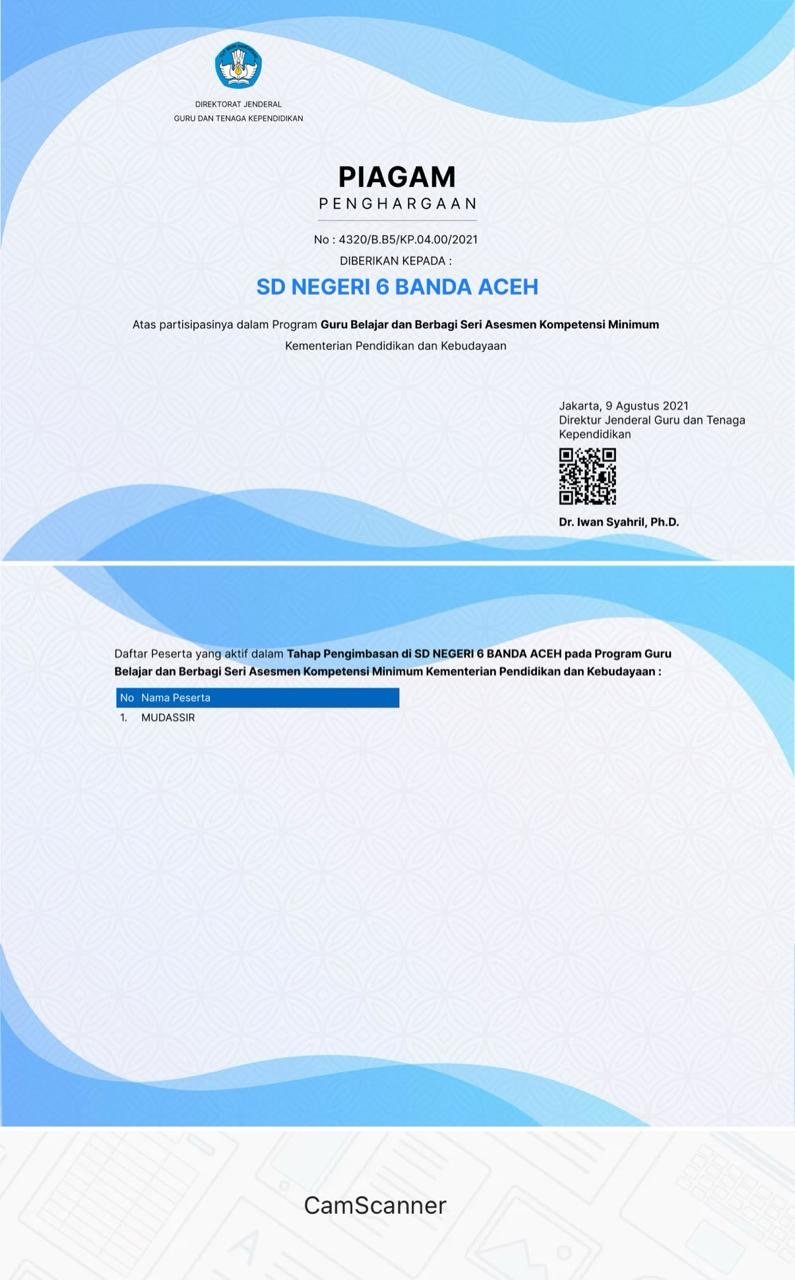 ![]() | Piagam Penghargaan Program Guru Belajar dan Berbagi Seri Asesmen Kompetensi Minimum |